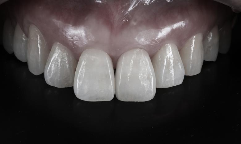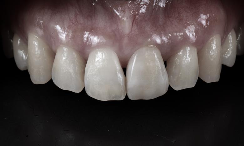 上の前歯6本の中で1本だけインプラントが入っています。どの歯がインプラント=作り物の歯か分かりますか?当院の高度歯科医療ではここまで自然な歯に仕上げることが可能です。