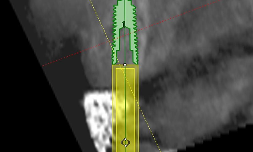 CT画像から歯ぐきの垂直的な厚みが足りないことが確認できた