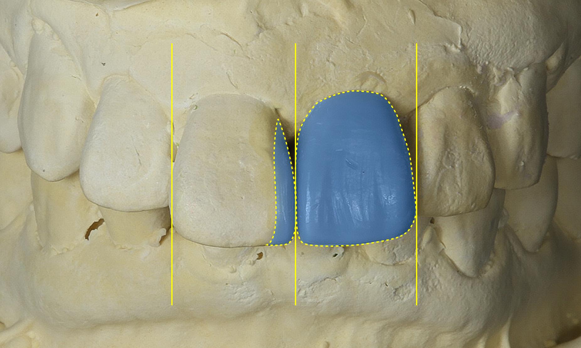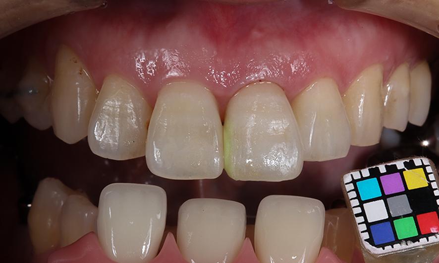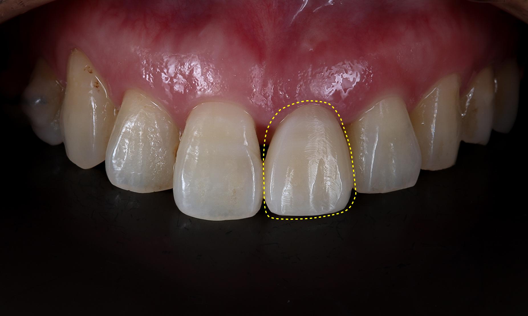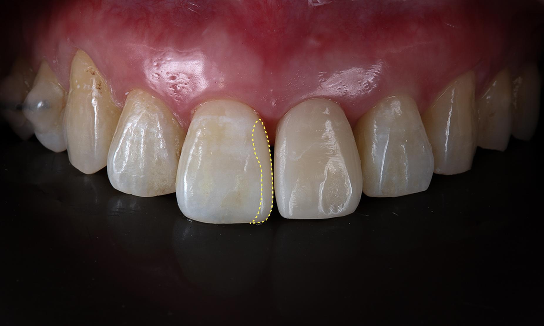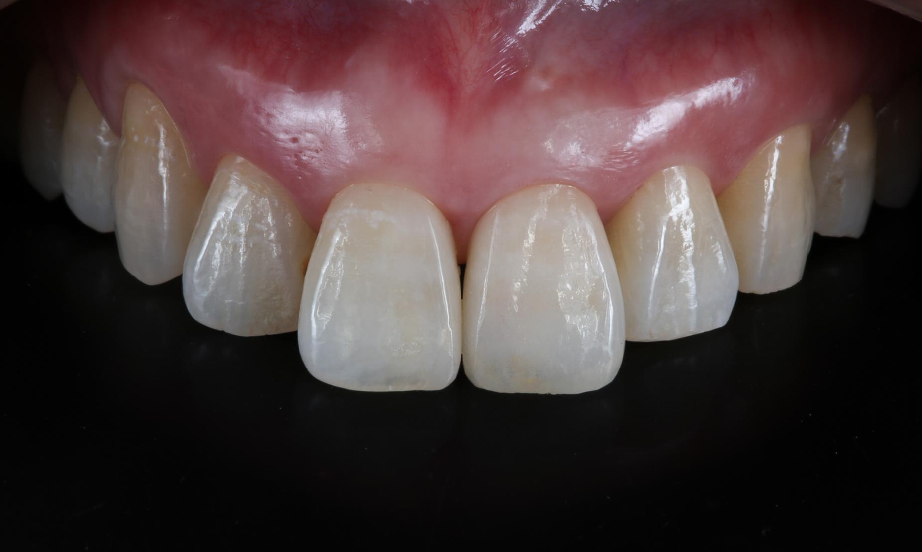- 左側の隣接歯の幅をダイレクトボンディングで補い左右対称に調整