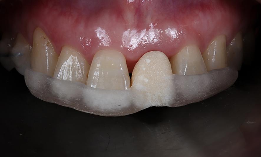 歯ぐき形成用のカスタムアバットメント(インプラント仮歯)が入ったところ。