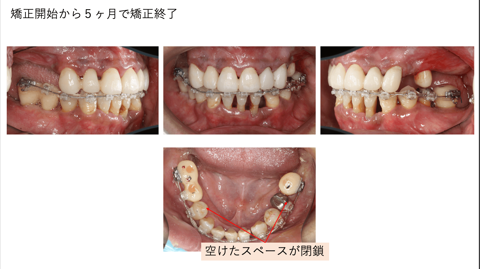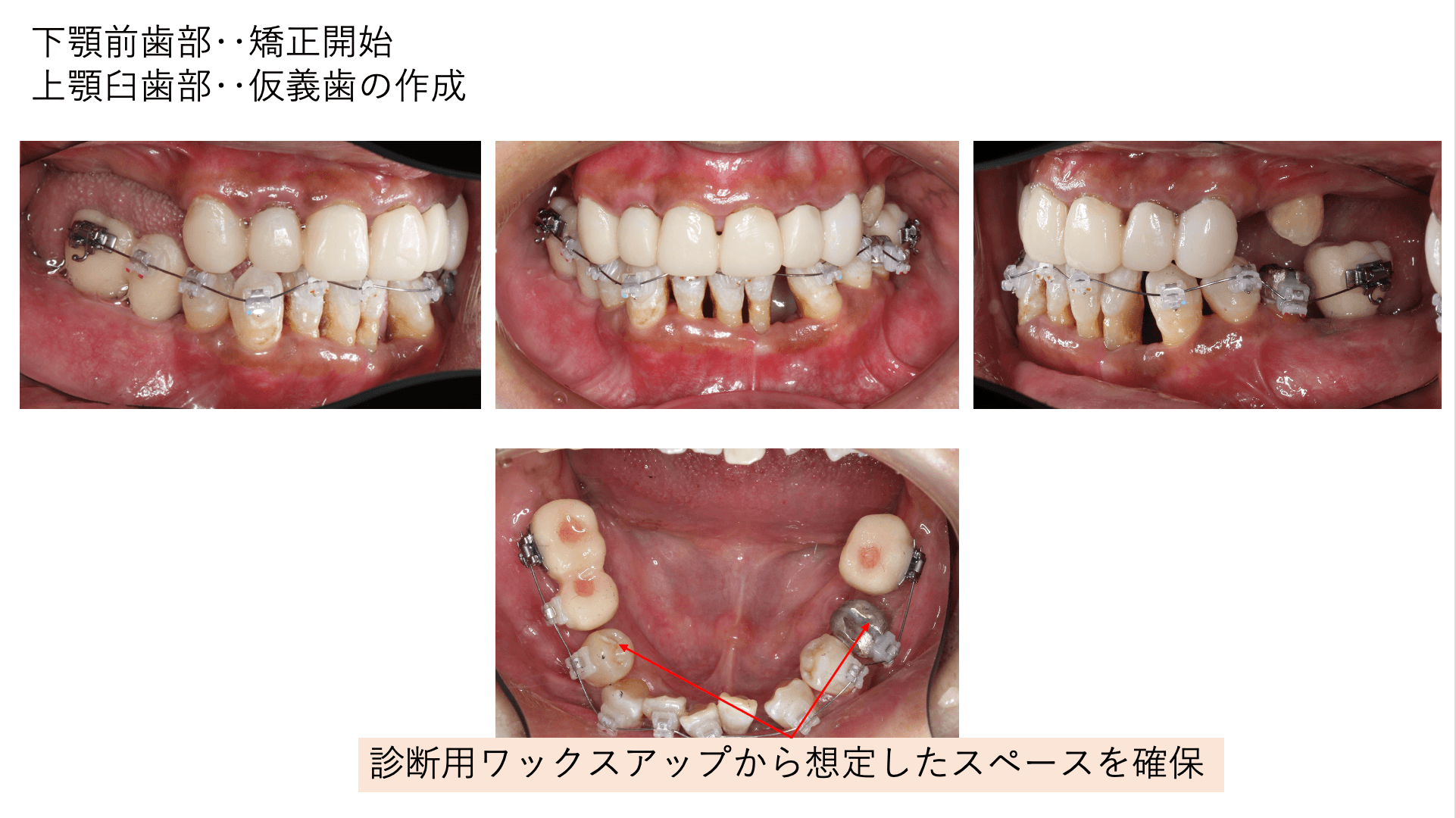 - その後、下顎前歯部の矯正治療+上顎臼歯部に仮義歯の作製