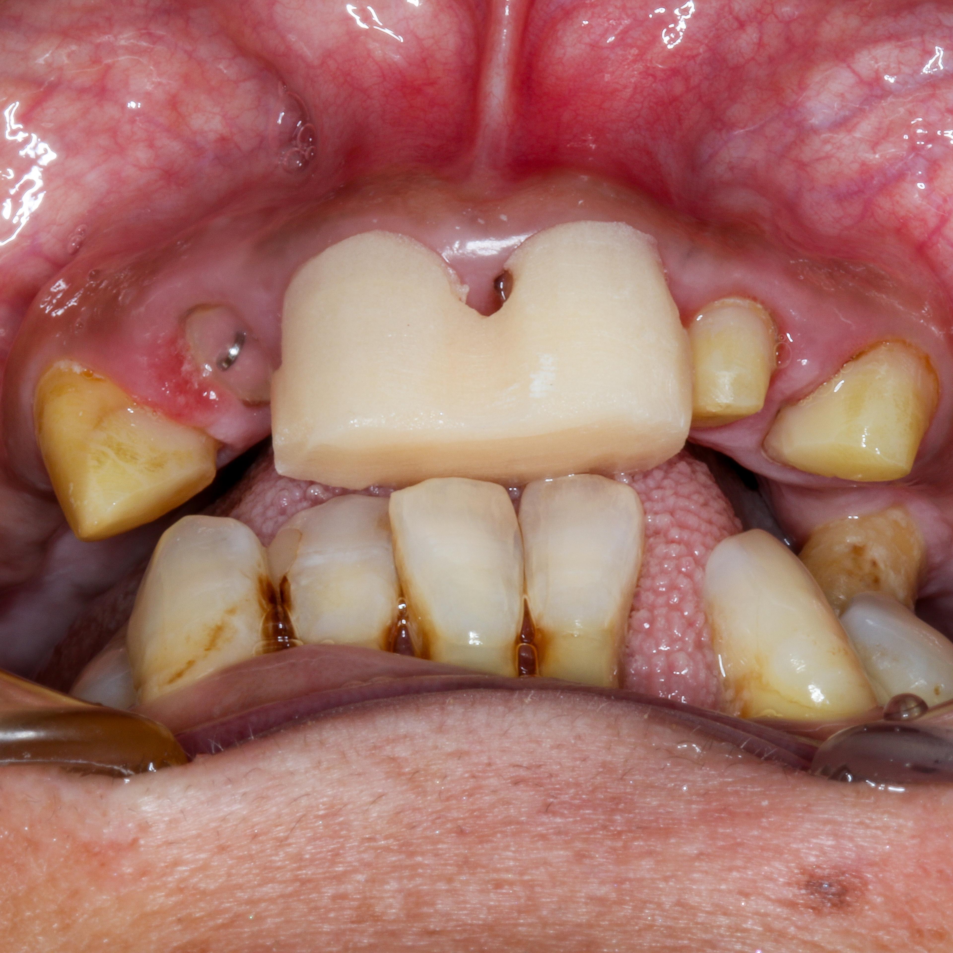 仮歯も2ステップで行います。ステップ1では、骨整形後1ヶ月で支台歯形成を行い、プロビジョナルレストレーション(仮歯)を作製