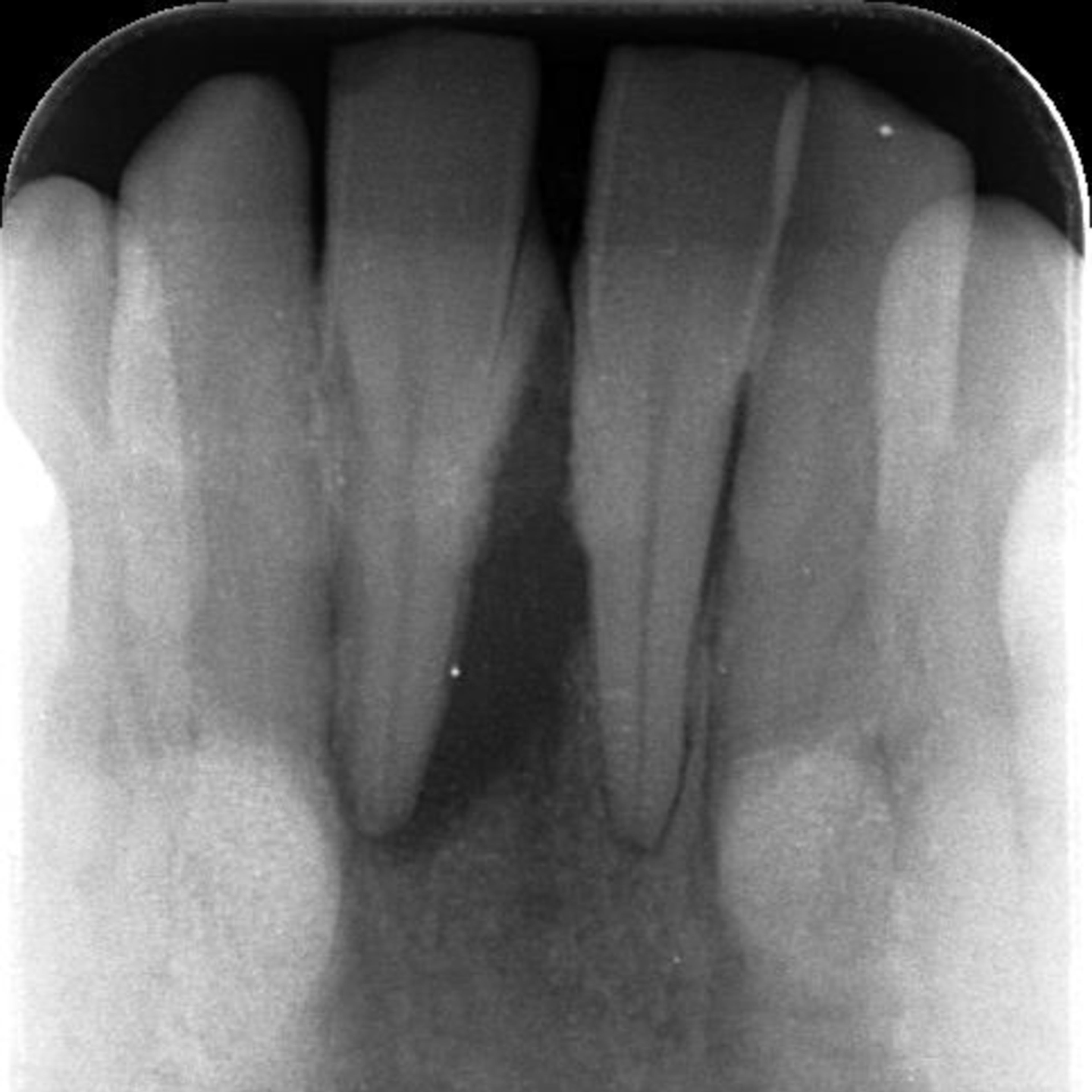 根尖に及ぶ透過像、黒い部分に骨はほとんどない。